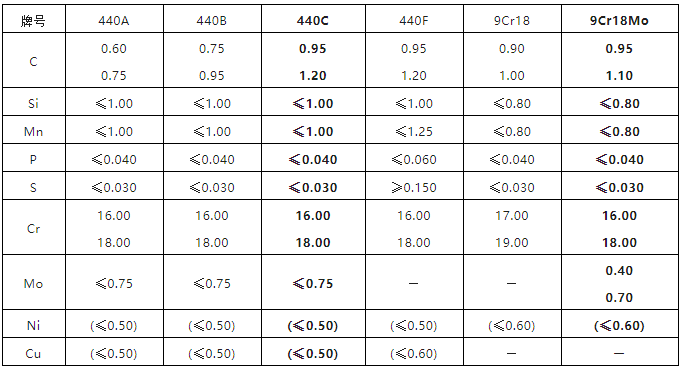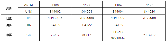 美标中440不锈钢有四个牌号。440A、440B、440C的含碳量依次升高;440F(ASTM A582)则在440C的基础上加大S的含量,是一种易切削钢种。
